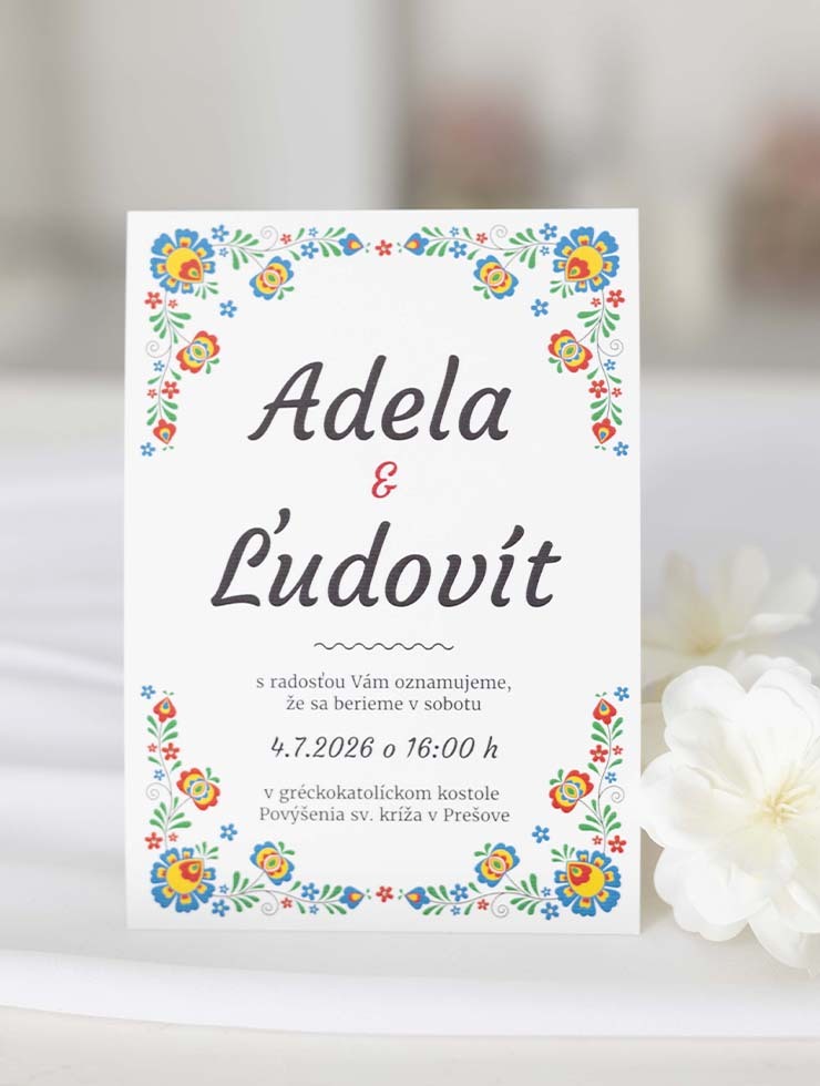 Oznámte svetu svoj výnimočný svadobný deň svadobným oznámením, ktoré je spracované v jedinečnom ľudovom motíve.