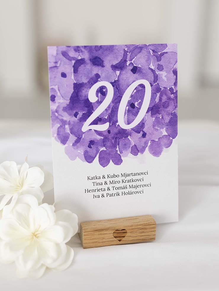 Svadobné čísla stolov v kvetinovom motíve Hortenzie sú praktickým a estetickým doplnkom. Sú navrhnuté tak, aby ladili s Vašou svadobnou výzdobou a poskytovali hosťom prehľadné označenie svadobných stolov.
